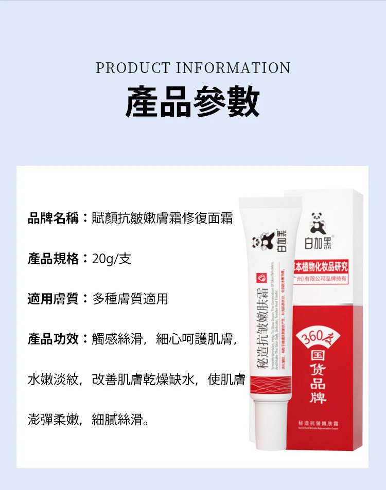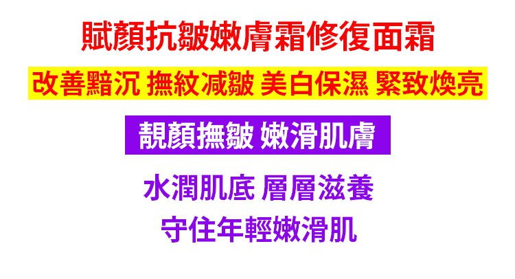 半小時前抗皺嫩膚霜 含有豐富保溼成分,有效淡化細紋皺紋。 恢復肌膚彈性和光澤,讓你的肌膚更年輕。 - 買二送二999