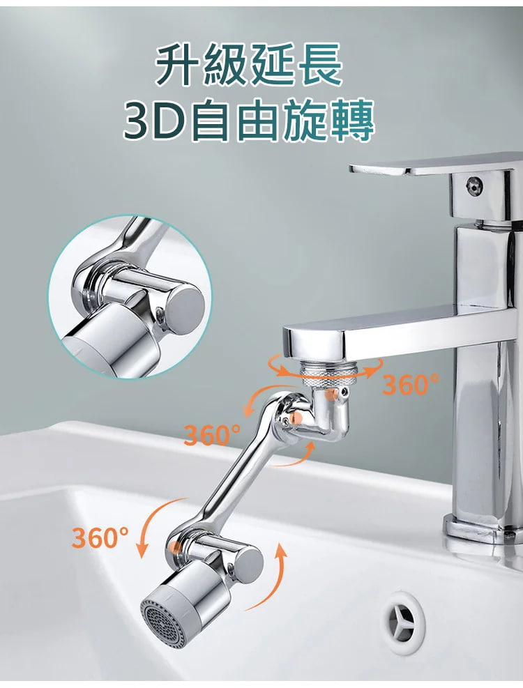 11分鐘前機械臂萬向水龍頭延長器 1080°自由旋轉,隨意伸縮 可直接漱口、沖臉、洗頭、清潔水池!防鏽防腐蝕,方便耐用! - 破盤嗨購【買三送三】6入組 僅需 -NT$1150