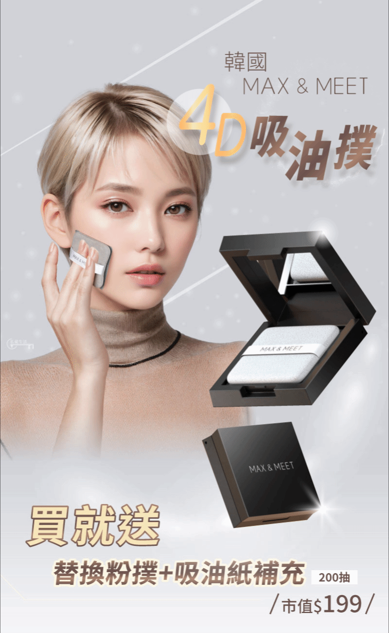 15分鐘前專為大油肌設計✅3倍吸油✅按壓妝不花【面部吸油紙】吸油不吸妝,保持妝感完美的秘密 - 『囤貨必入組』4入組 - NT$1598