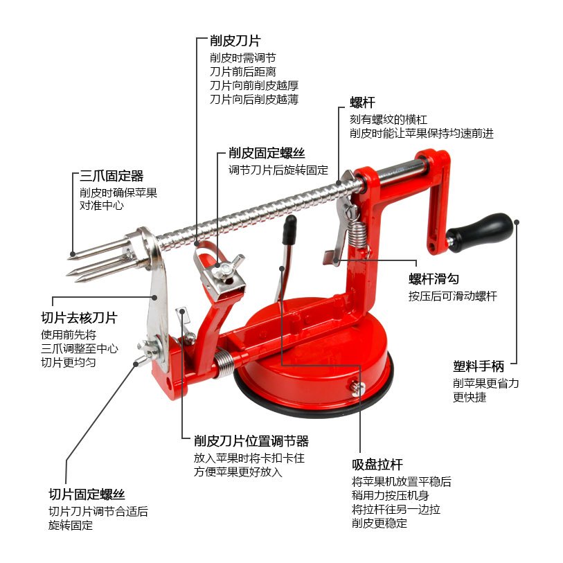 5分鐘前手搖蘋果削皮器 三合一削皮切片去核 削皮機多功能家用去皮廚房削水果神器 - 優惠價1入組NT$899