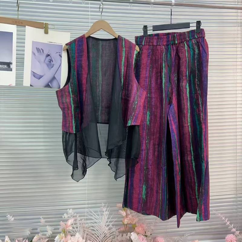 15分鐘前居然這麼顯瘦!色彩感十足的氣質馬甲套裝也太美了吧,假兩件馬甲搭配條紋寬褲,妥妥的慵懶感~ - 【限時下殺】馬甲+褲子一套 僅需 NT$998