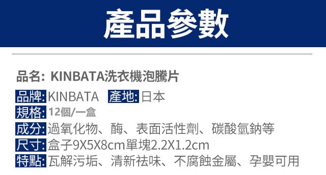 20分鐘前【日本進口】去污清潔泡騰片,適合清潔洗衣機水槽馬桶多種用途!無效全額退款, 固保三年! - 日本KINBATA洗衣機泡騰片 入6組60個 NT$1299