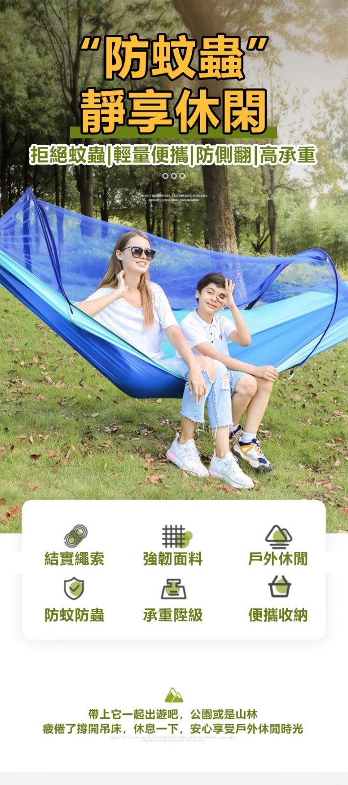 20分鐘前全自動速開戶外帶蚊帳吊床 - 【創意嘗鮮】承重700公斤 速開蚊帳吊床【無蚊帳+三米綁繩+8號扣】/1入組NT$998