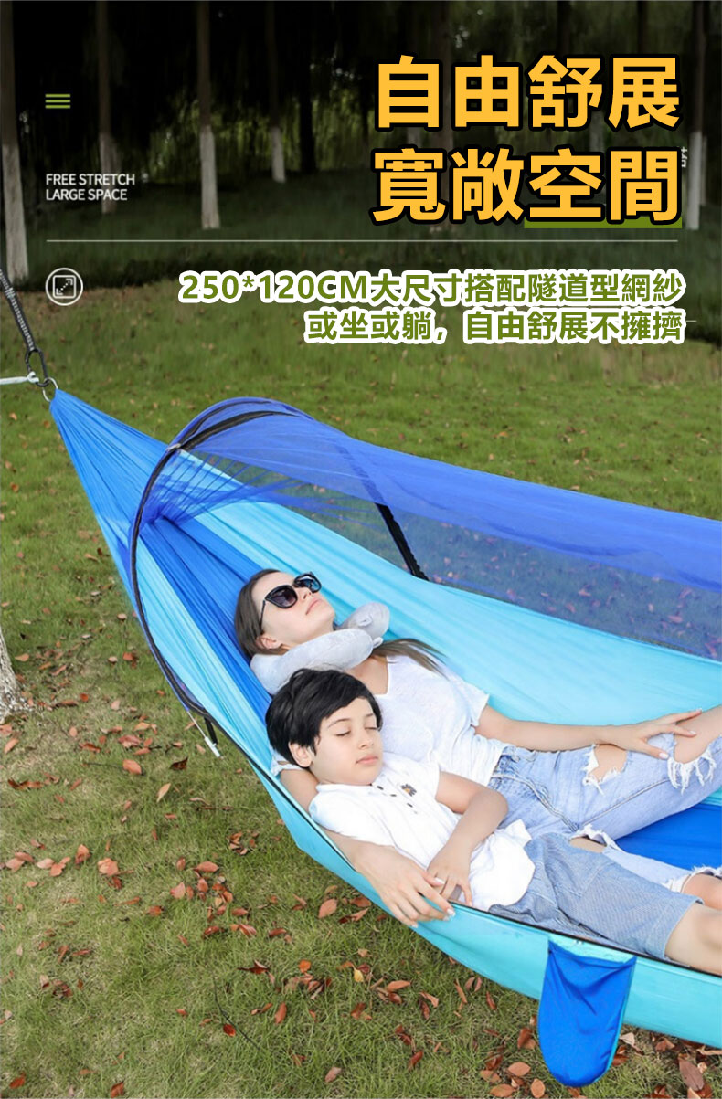 半小時前全自動速開戶外帶蚊帳吊床 - 【創意嘗鮮】承重700公斤 速開蚊帳吊床【帶蚊帳 三米綁繩 8號扣】/1入組NT$1298