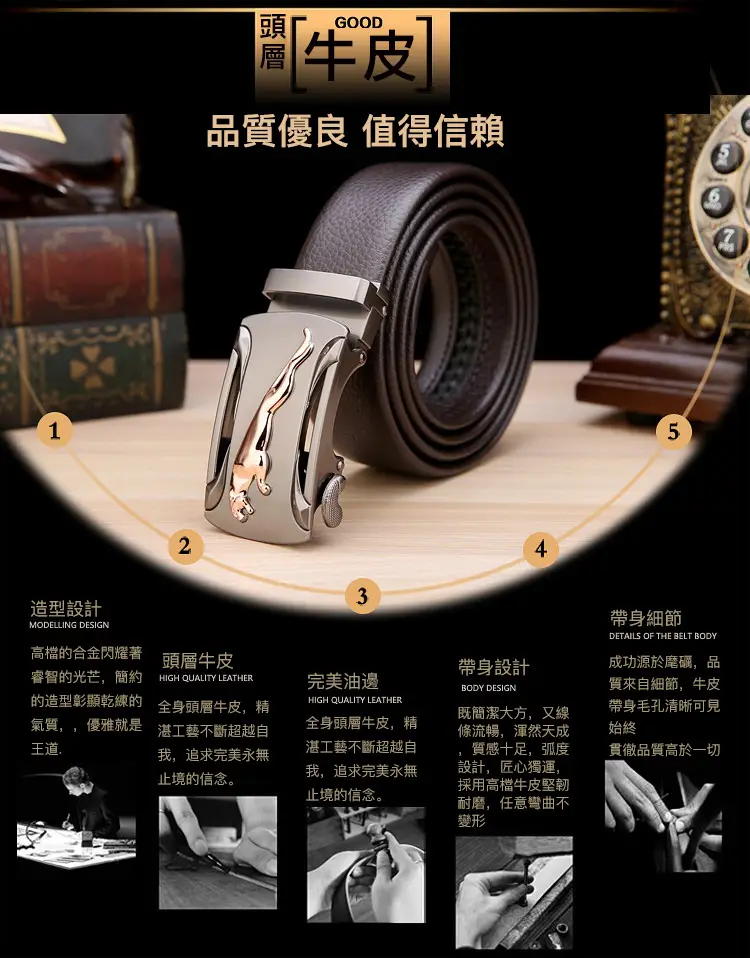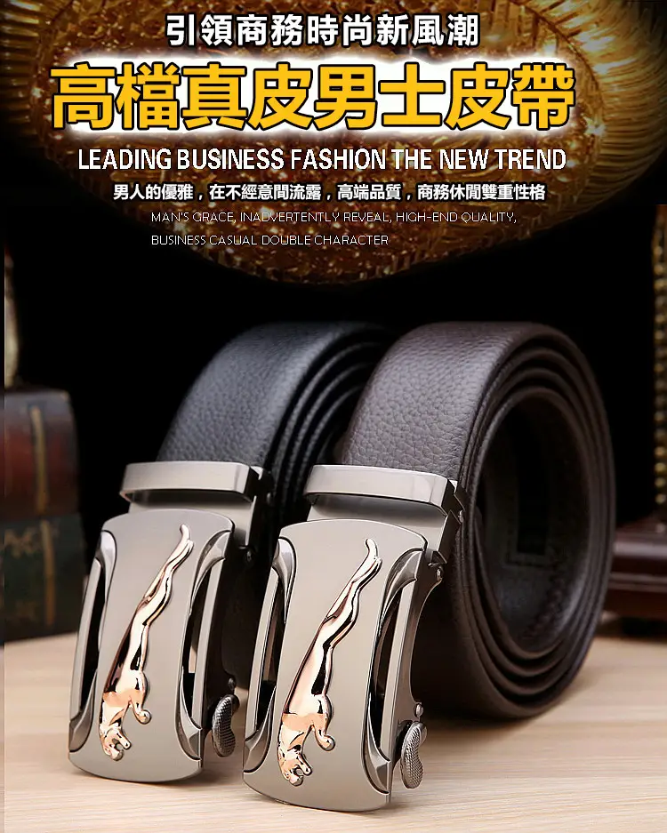 7分鐘前【官方站】男士獵豹自動扣真皮腰帶 【能用十年的真皮腰帶】 整張牛皮裁剪打造,純手工製作,耐磨耐折耐用,品質高端,彰顯男士成熟魅力