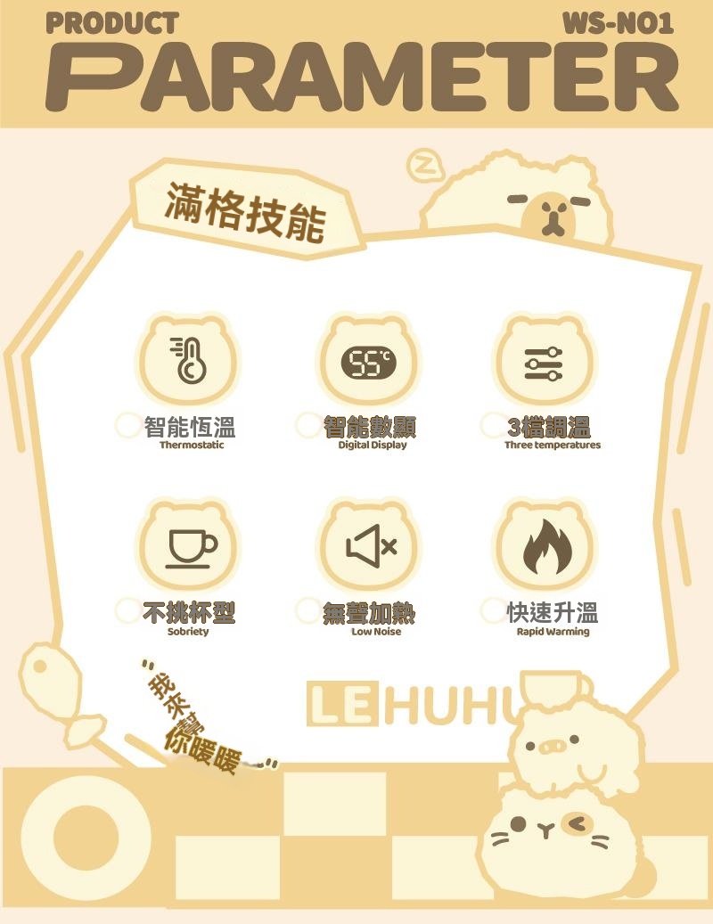 12分鐘前可愛智能恆溫usb加熱杯墊三擋可調溫 辦公室家用自動保溫暖杯 - 新品嘗鮮!1入組-NT$998