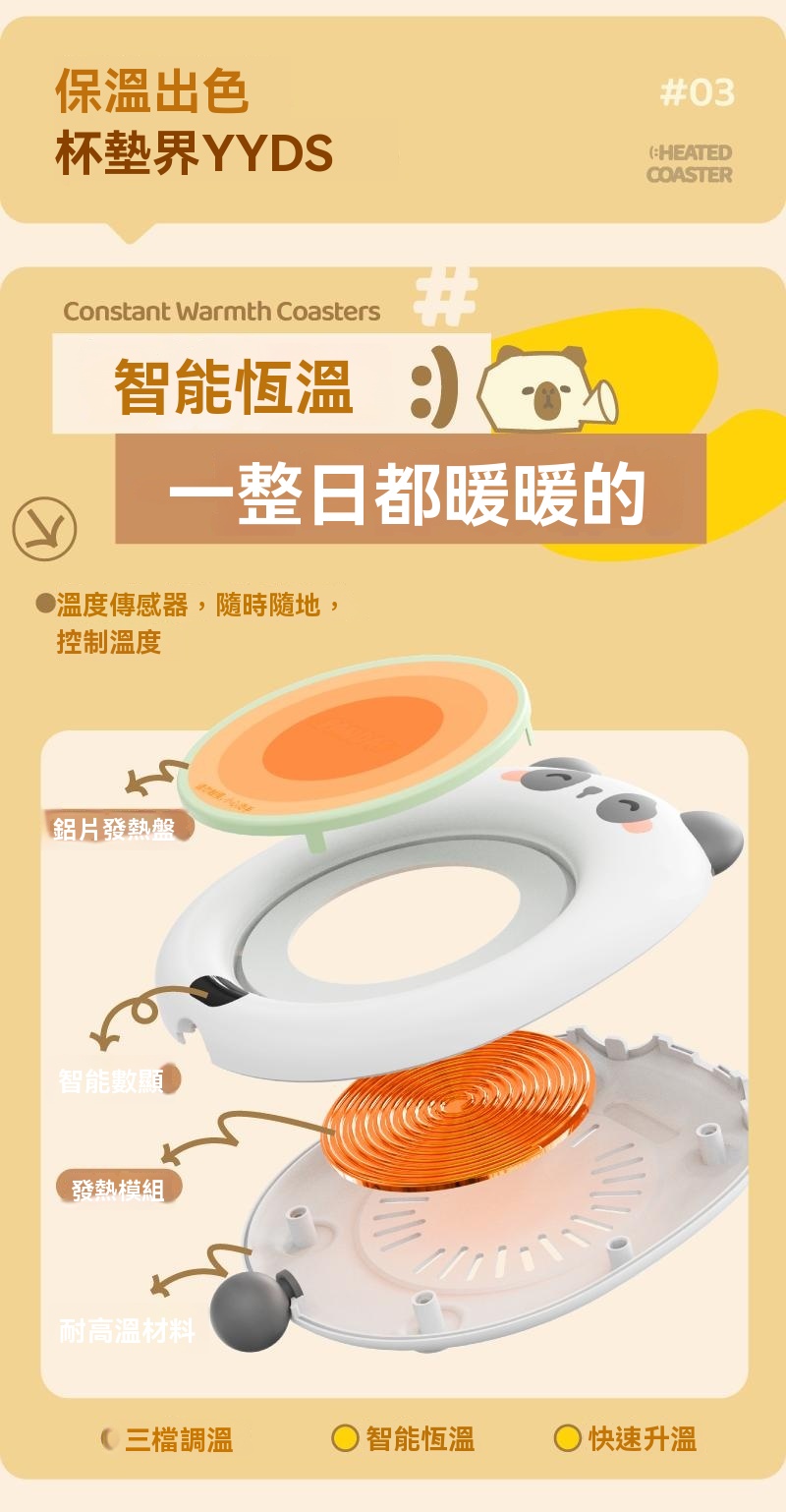 半小時前可愛智能恆溫usb加熱杯墊三擋可調溫 辦公室家用自動保溫暖杯 - 新品嘗鮮!1入組-NT$998