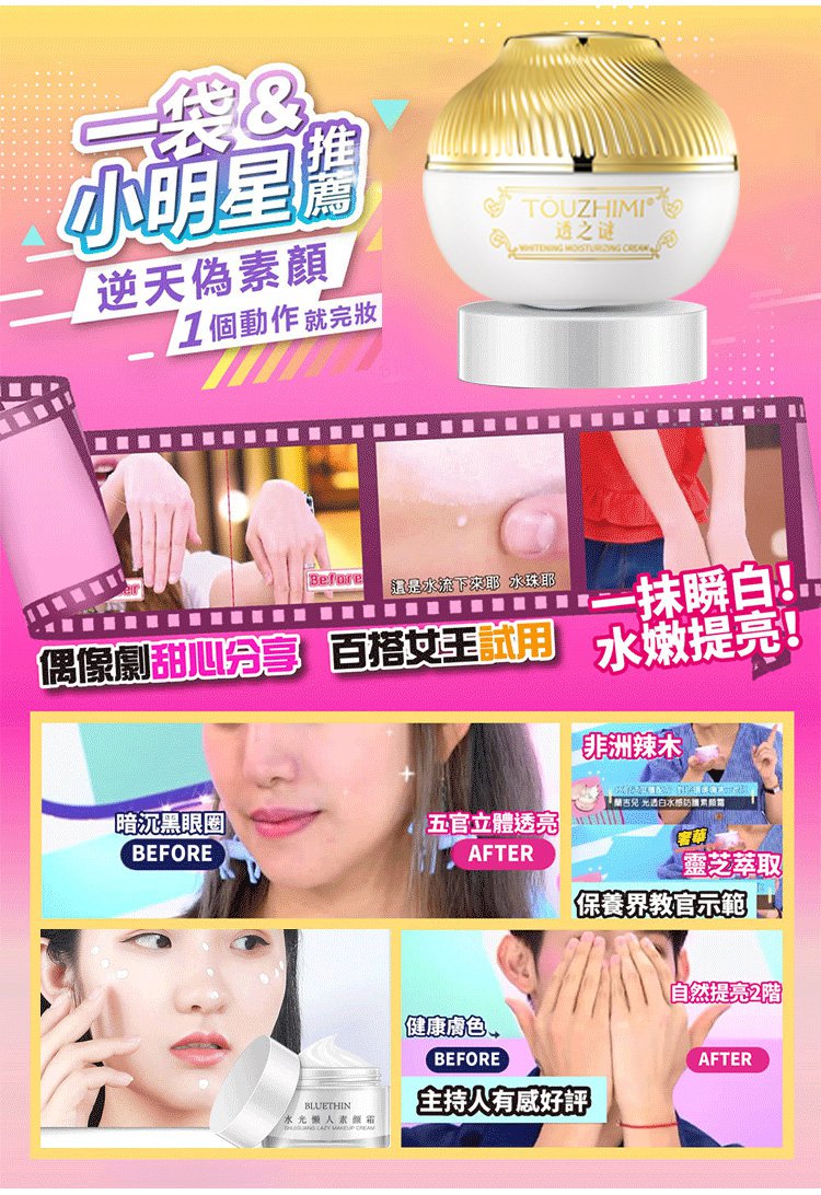 4分鐘前 買一送一!!一抹美顏素顏霜 臻顏美膚素顏霜 遮瑕美白,水潤服帖,細緻毛孔 10S上妝,打造素顏美肌 - 限時促銷:買二送二$999