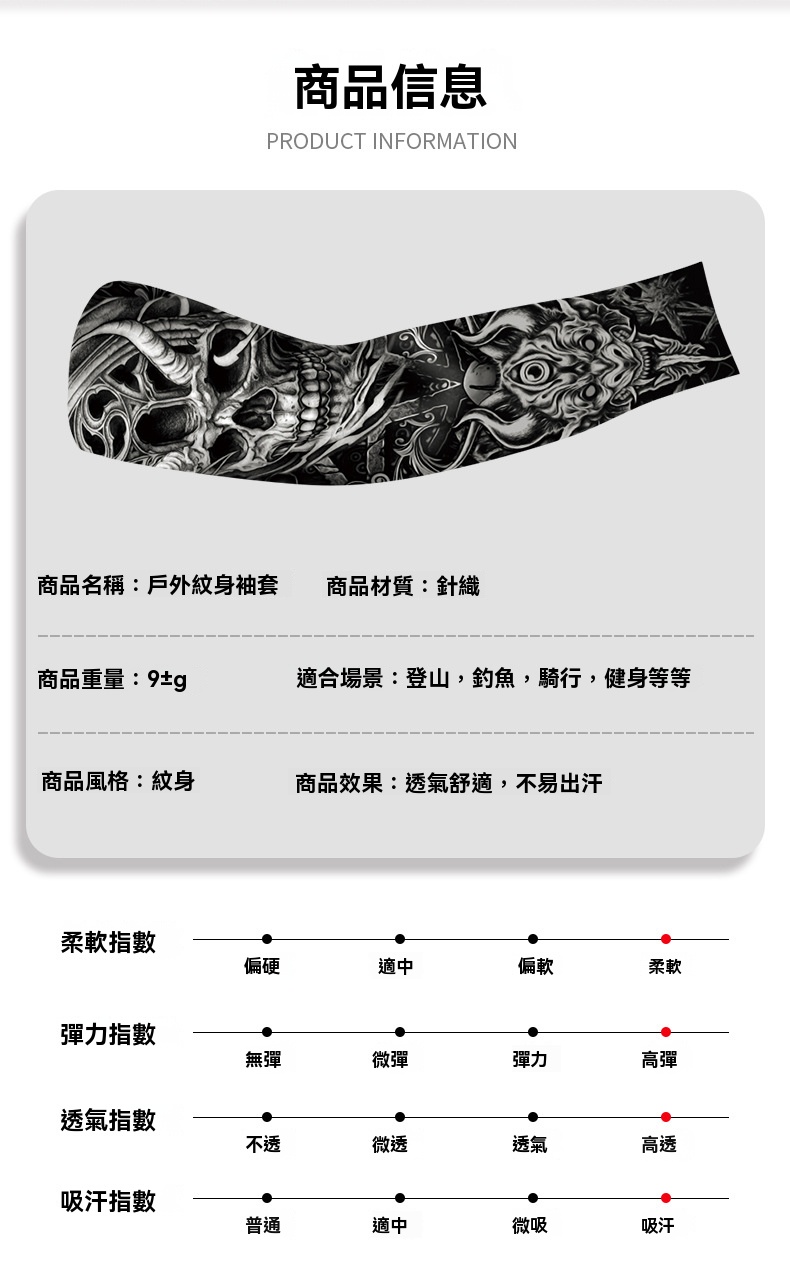 12分鐘前夏季騎行防曬紋身袖套仿真刺青速幹護臂戶外運動遮陽透氣高彈冰袖 - 體驗!!【買二送二】4入組-NT$980