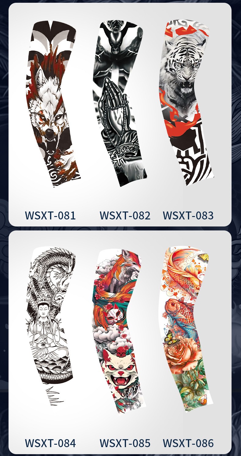 5分鐘前夏季騎行防曬紋身袖套仿真刺青速幹護臂戶外運動遮陽透氣高彈冰袖 - 體驗!!【買二送二】4入組-NT$980
