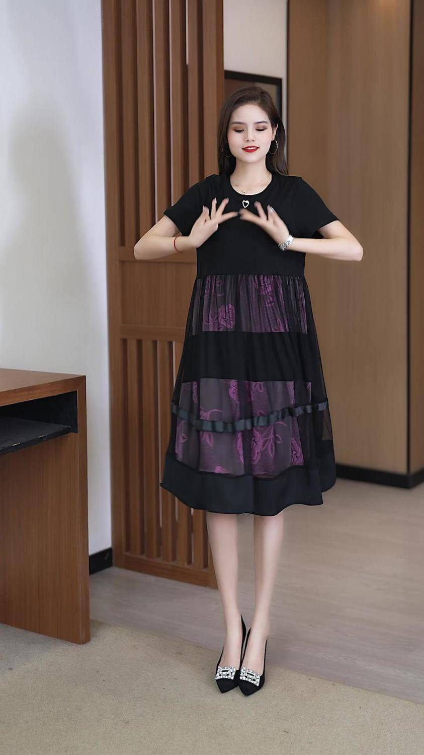 5分鐘前2025夏季新款時尚假兩件寬鬆遮肚網紗連衣裙 - 【尊享三入】僅需NT$1298(均價NT$432)