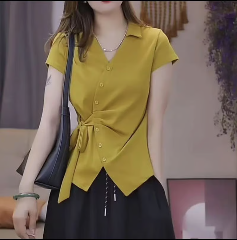 半小時前夏季新款重工不規則設計短袖時尚綁帶V領T恤女修身顯瘦上衣女 - 【超值團購】到手3件-NT$1699